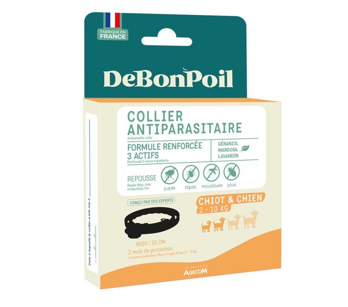 Le collier antiparasitaire DeBonPoil est destiné à une utilisation préventive ou en entretien, chez les chiens pesant entre 2 et 10 kg.
